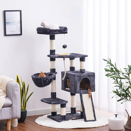 Cat Tree, Cat Tower for Indoor Cats with Scratching Board, Multi-Level Cat Furniture Condo with Feeding Bowl